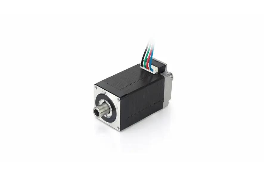 High-Torque-Schrittmotor in Baugröße NEMA 11 (28 mm) mit 1,8 ° Schrittwinkel. Die Serie SCA2818 ist standardmäßig mit einem zweiten Wellenende für die Montage eines Encoders ausgestattet.