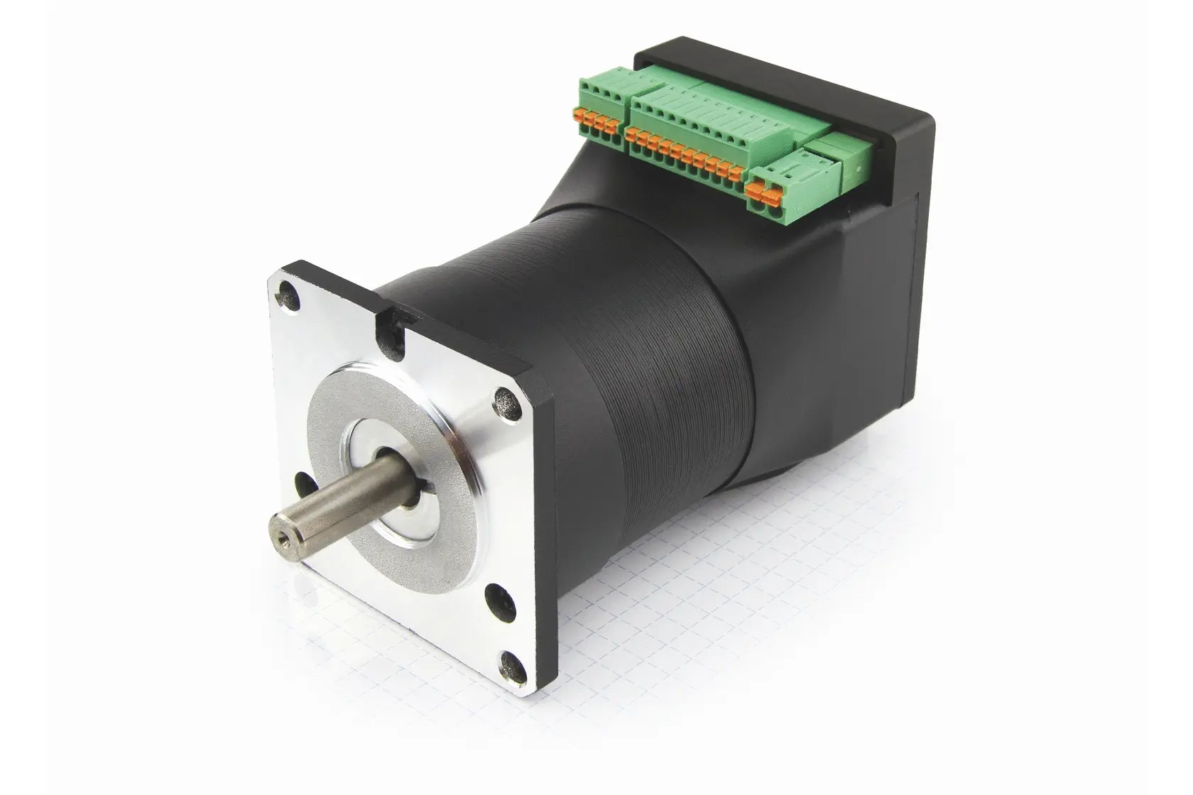BLDC-Motor mit integriertem Controller und Encoder. Einfacher Anschluss sowie geringer Platz- und Komponentenbedarf. Flanschgröße: 56 mm.