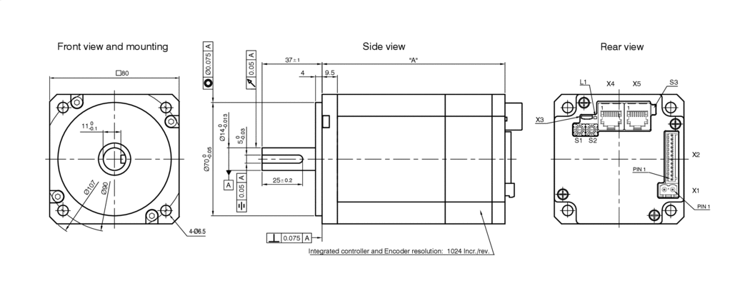 PD6-CB80M048030-E-09 –  Bürstenloser DC-Motor mit integriertem Controller – NEMA 34 und Flanschgröße 80 mm