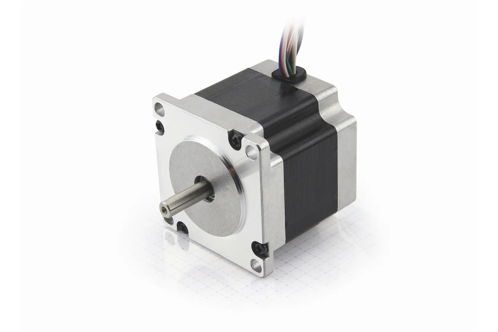 High-Torque-Schrittmotor in Baugröße NEMA 23 (56 mm) mit 1,8° Schrittwinkel (Vollschritt). Standardbaugröße für den Einbau in Linearachsen oder kleine CNC-Maschinen. In vier Längen und verschiedenen Ausführungen erhältlich.