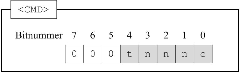 Dabei ist das Byte <CMD> abhängig von der Länge der Daten, welche geschrieben werden sollen. <CMD> kann einer der folgenden Werte sein: