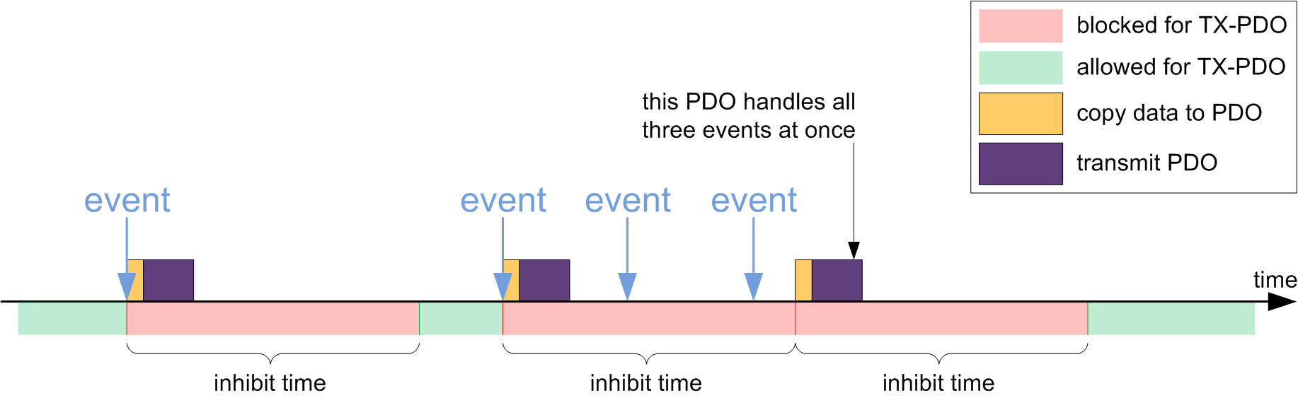 Zudem ist zu beachten, dass der Zeitpunkt - zu dem die Daten in die TX-PDO-Nachricht kopiert werden - und der Zeitpunkt des Versendens nicht der gleiche sein müssen (abhängig vom Modus).