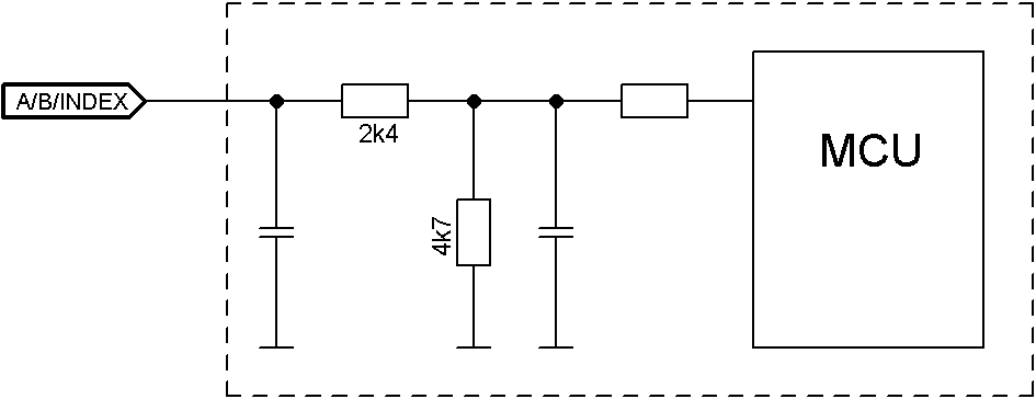 X2 − Encoder/Hall Sensor Typ: JST S12B-PADSS-1 Gegenstecker (im Lieferumfang nicht enthalten): Gehäuse: JST PADP-12V-1-S (oder äquivalent) Kontakte: JST SPH-001T-P0.5L (oder äquivalent) Passende Nanotec-Kabel (nicht im Lieferumfang enthalten): ZK-PADP-12-500-S ZK-M12-8-2M-2-PADP ZK-M12-12-2M-2-PADP ZK-NTO3-10-500-PADP / ZK-NTO3-10-1000-PADP ZK-NOE-10-500-S-PADP ZK-WEDL-500-S-PADP Pin 1 und Pin 2 sind im Bild markiert. Pin Funktion Bemerkung 1 GND 2 Vcc 5 V DC, Ausgangs- und Versorgungsspannung für Encoder / Hall Sensor; max. 200 mA 3 A 5 V Signal, max. 1 MHz 4 B 5 V Signal, max. 1 MHz 5 A\ 5 V Signal, max. 1 MHz 6 B\ 5 V Signal, max. 1 MHz 7 I 5 V Signal, max. 1 MHz 8 I\ 5 V Signal, max. 1 MHz 9 Hall 1 5 V Signal 10 Hall 2 5 V Signal 11 Hall 3 5 V Signal 12 Shielding Schirmung Anmerkung: Bei Verwendung eines Single-Ended-Encoders werden die Kanäle A/, B/ und I/ nicht ausgewertet! Damit ein Single-Ended-Encoder richtig erkannt wird: ► Setzen Sie das Objekt 2059h auf den Wert "2". ► Schließen Sie an die Pins A\, B\, I\ nichts an, legen Sie diese Pins ebenfalls nicht auf die Masse (GND). Es gelten folgende Schaltschwellen für die Encoder-Eingänge: Typ Schaltschwellen Ein Aus Single > 3,8 V < 0,26 V Differenz > 3,8 V < 0,26 V Die interne Beschaltung der Encoder-Eingänge ist nachfolgend dargestellt.