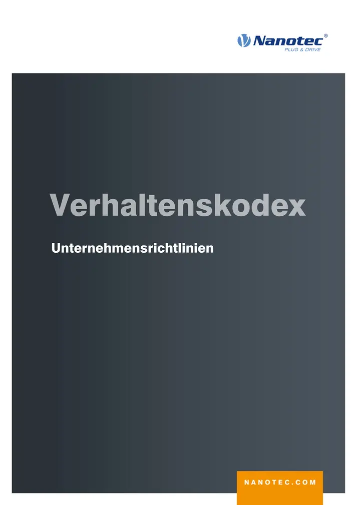 Die Nanotec Electronic GmbH & Co. KG und ihre verbundenen Unternehmen nehmen die Verantwortung gegenüber ihren Mitarbeitenden und Geschäftspartner:innen, der Öffentlichkeit und der Umwelt sehr ernst. Wir halten uns an geltende Gesetze und Vorschriften und haben uns zur Einhaltung grundlegender ethischer Prinzipien verpflichtet.