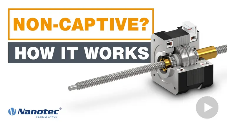 Non-captive linear actuators – design Linear actuators without linear guide need an external guide to prevent the lead screw from rotating. Watch our video to learn more about the motion of the rotor and the lead screw.