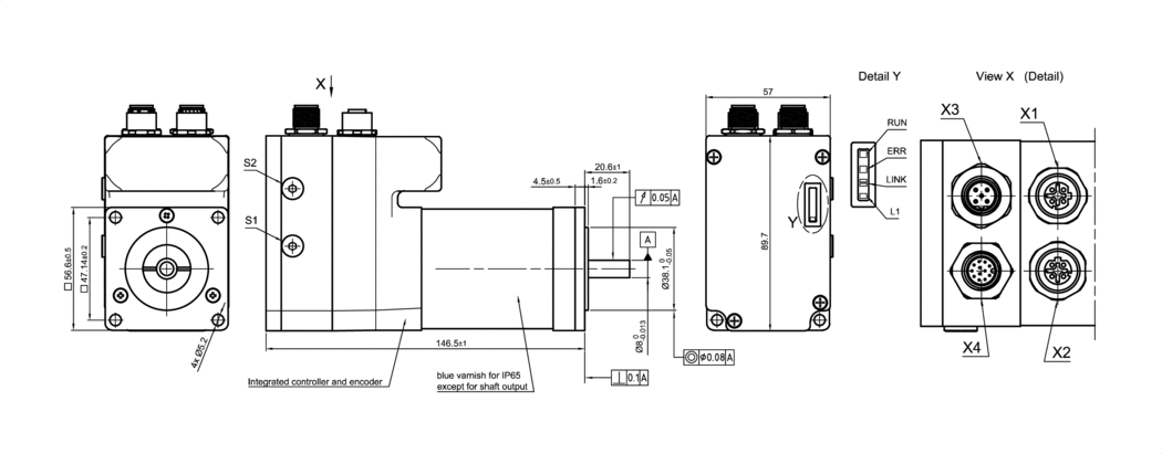PD4-EB59CD-M-65-1A –  Brushless DC servo motor with integrated controller in protection class IP65 – NEMA 23