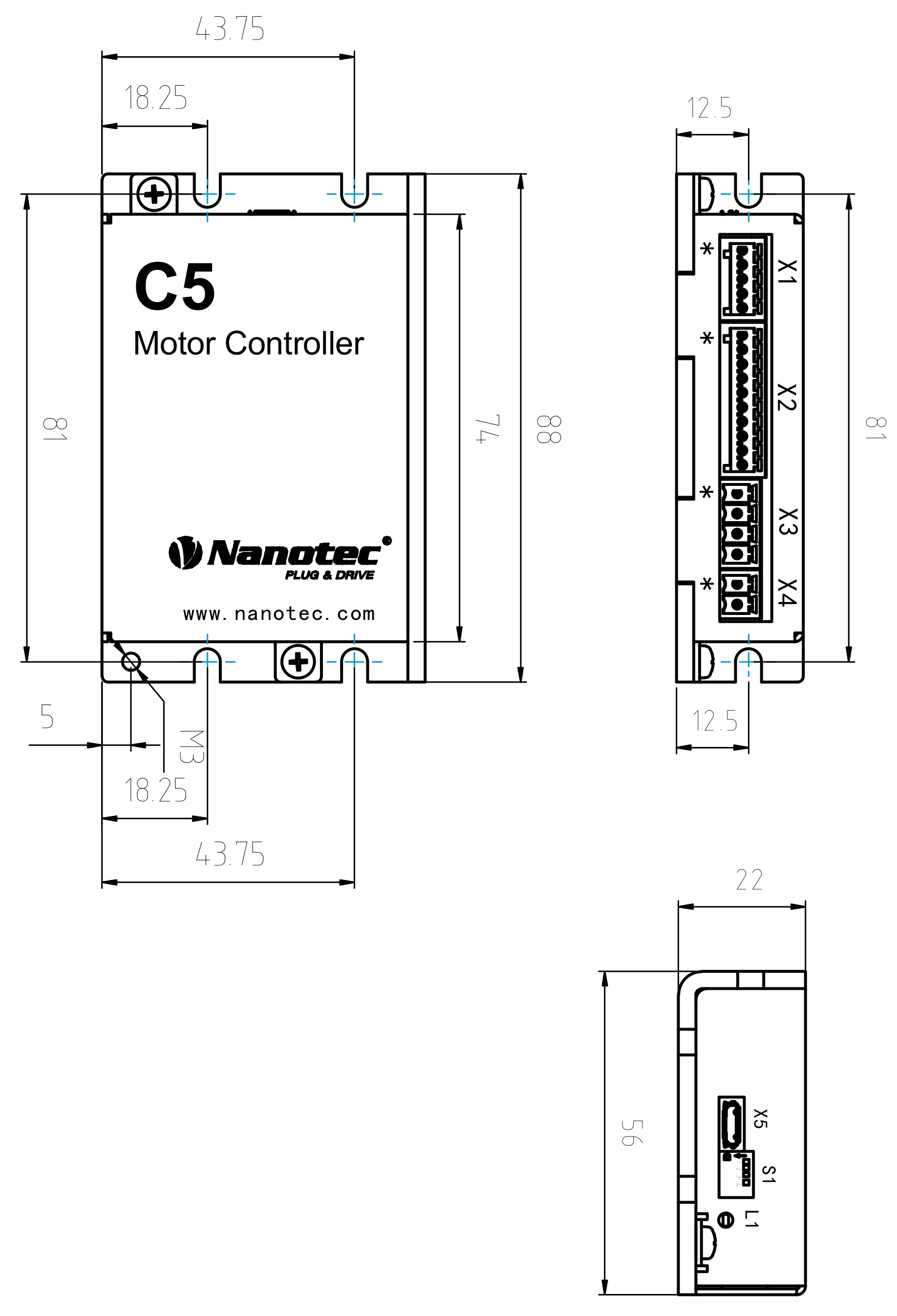 You can secure the controller by its side tabs to a flat mounting surface using screws or mount it on a TH35 DIN rail in your switch cabinet using the supplied DIN rail clip.