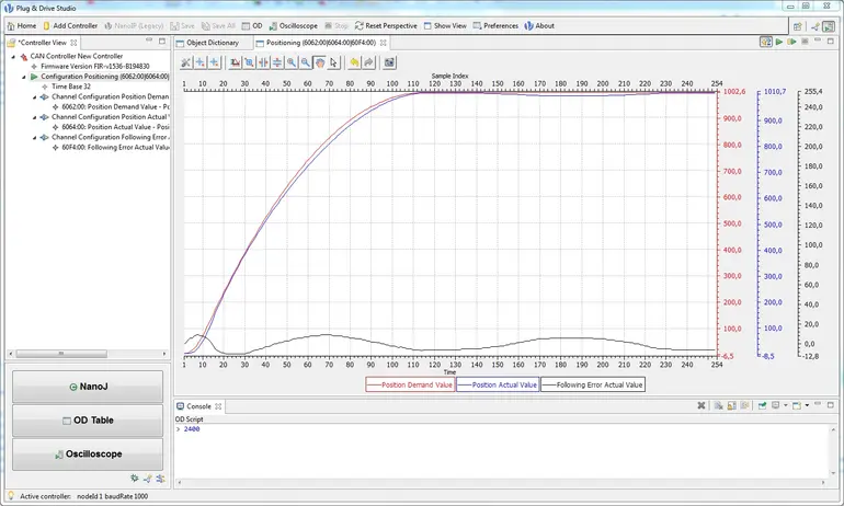 A new software is available for easy commissioning and programming of Nanotec's motor controllers: Plug & Drive Studio. The controller can now be accessed from a PC via a variety of fieldbuses (CANopen, Ethernet, Modbus). For setup, the object dictionary holding the controller configuration can be read and written via a table. Predefined filters are applied to display only currently relevant objects. The objects can also be configured via an integrated command line. The entire communication can be recorded and played back again later so that lengthy command sequences only need to be entered once during commissioning. To tune the controller parameters, an integrated oscilloscope can simultaneously display any eight objects with a resolution of up to one millisecond. To program the controller with NanoJ V2, an integrated development environment is available that consists of a source text editor with automatic code addition, a compiler and a debugger. Since all of the Plug & Drive Studio functions can be used simultaneously, controller behavior can be tracked during program execution using the object dictionary and oscilloscope. As a result, customized functions can be programmed easily and quickly.
