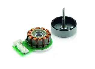 Brushless DC Motors Brushless DC motors Functionality Brushless direct current motors, abbreviated as BLDC motors, are – despite their name – three-phase current synchronous machines: the rotor follows a magnetic rotational field and the movement is synchronous to the AC voltage applied to the windings. This motor type is frequently referred to as "brushless direct current motor" because, in many applications, it replaces direct current motors with brushes (brushed DC or commutator motors). In a brushed DC motor, direct current voltage is applied, generating a speed-independent alternating current by means of a mechanical inverter in the motor – the brushes. Together with an electronic drive controller, which takes control over the function of the brushes and converts the fed-in direct current into an alternating current, the BLDC motor delivers performance comparable to that of a brushed DC motor – without the brushes, which have a limited service life. BLDC motors are therefore also referred to as EC (electronically commutated) motors in order to distinguish them from mechanically commutated motors with brushes. Another commonly used term is PMSM, which stands for permanent magnet synchronous motor. Here, "permanent magnet" is used to distinguish itself from other synchronous motors that operate with a field winding on the rotor, whereas the BLDC is permanently energized. In other words, the motor rotor generates a magnetic field by means of a permanent magnet even if the stator is not energized. The terms PMSM and BLDC are frequently juxtaposed in order to distinguish between PMSM motors with sinusoidal induced voltage (back-EMF) and BLDC motors with trapezoidal induced voltage (see below). Today, most BLDC motors exhibit a sinusoidal back-EMF. 1. Structure/types Most BLDC motors are "internal rotor motors" in which the rotor is rotated by permanent magnets on a shaft in a stationary stator with coils. With "external rotor motors" the stator is located on the inside and the rotor consists of an externally rotating bell-shaped housing in which the magnets are mounted. The advantages of internal rotor motors lie in their low rotor inertia and the superior dissipation of lost heat. By contrast, with external rotor motors, the heat-generating coils are insulated against their environment by the rotor housing and magnets. Due to their high rotor inertia torque and the fact that the rotor housing can only be balanced with difficulty, external rotor motors are unsuitable for very high rotational speeds. Accordingly, internal rotor motors are used in the majority of industrial applications. External rotor motors display their advantages in series applications, as they are less expensive to produce. They can also be made shorter and usually have a lower detent torque, as well as a higher torque – thanks to the larger rotor diameter, at the same magnetic force. Both motor designs are generally produced with three phases. However, there are also designs with one or two phases. In the following only the three-phase BLDC motors will be described, because Nanotec only produces these. Both internal and external rotor motors are manufactured with slotted windings; here the winding wire is wound around the stator pole shoes (iron core), which allows the magnetic field lines of the winding to flow out and concentrate in a defined form. The stator is made up of thin, mutually offset insulated metal plates in order to keep the eddy current losses to a minimum. Slotless BLDC motors are a special type of internal rotor motor that are very popular in very small motors. Their stators only consist of ring-shaped metal plates and a flat, bonded or encapsulated winding is affixed on the inside. Since there is no iron core, the inductance of the motor is very low and the current in the windings increases rapidly. In addition, iron losses are greatly reduced and the motors have a higher efficiency rating. During slow operation, the lack of torque ripple has a positive effect. Unlike standard BLDC motors, the magnetic field is not reinforced at the pole shoes and there is no detent torque. This design type is especially important for motors with a diameter of less than 40 mm, as their power density is significantly higher than that of slotted motors. This is due to the fact that, as a consequence of production, with slotted motors a relatively large portion of the stator always remains empty between the windings. On the other hand, with slotless motors, this space can be completely filled with the copper winding. The smaller the diameter of the motors, the more important this advantage of slotless motors becomes. Internal Rotor Motor External Rotor Motor Slotless BLDC Motor 2. Motor control/commutation The BLDC motor rotates because the permanent magnet on the rotor attempts to align itself in the direction of the magnetic field generated by the electromagnets of the stator. While doing this, the torque is at a maximum when both magnetic fields are perpendicular to one another. The type of control is distinguished in two ways: in the form of the power supply of the windings (block-shaped or sinusoidal), or in the methods for identifying the rotor position. It is necessary to determine the rotor position because the currents in the windings must be timed to switch in such a way that the stator magnetic field is always perpendicular to the rotor magnetic field, i.e. it continues turning with the desired speed. 2.1 Block Commutation The rotor position can be easily determined through Hall sensors in the motor. These can then be switched by a suitably aligned magnet on the rotor at the exact time the winding must be switched. The three windings then correspond to three Hall sensors; their states define how the windings must be connected. If the three windings are digitally switched, i.e. either there is no current or full current at the windings, this is referred to as block commutation. This combination of 