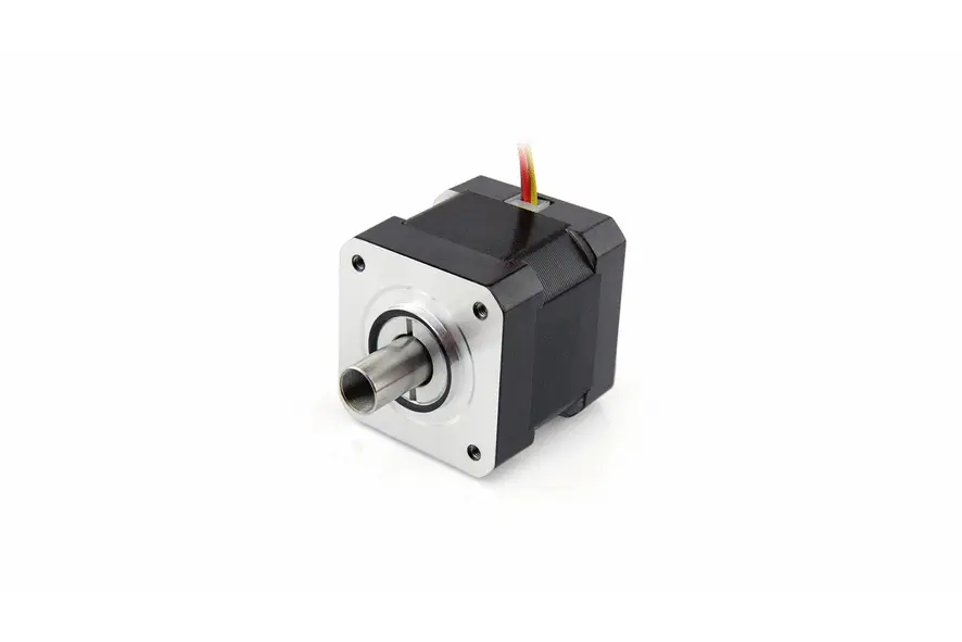 High-torque stepper motor with hollow shaft in size NEMA 17 (42 mm) and with 1.8° step angle (full step). Available in various lengths and versions.