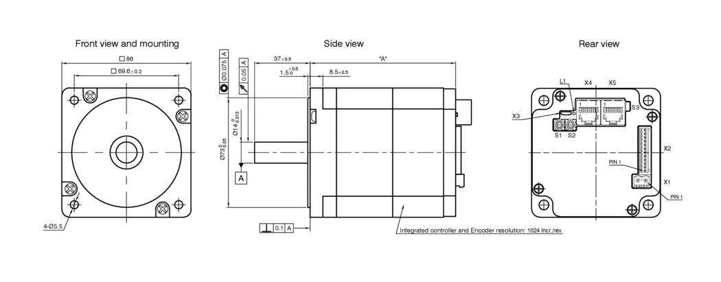 PD6-CB87S048030-E-09 –  Brushless DC motor with integrated controller/drive – NEMA 34 and flange size 80 mm